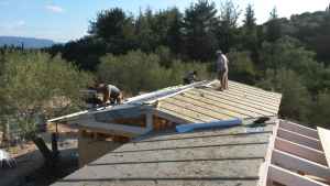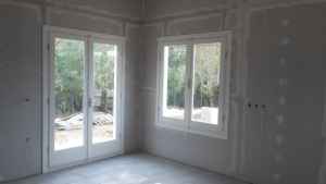 In the internal masonry, we still have alternative possibilities. We can have visible wood, or plaster, lined with stone or plasterboard.